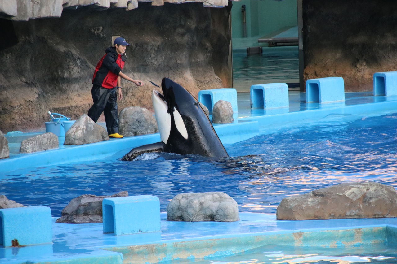 名古屋港水族館 シャチの公開トレーニング(飼育プール版) 2018年11月14日 23:10 久しぶりに名古屋港水族館に行ってきました。シャチの3頭(アース・リン・ステラ)の公開トレーニングはメインプールではなく飼育プールにて行われました。メインプールではないため小規模ではありますが、元気にジャンプなどの技も見せてくれました。完成されたショーではなく、このようなトレーニングでも十分楽しめますし、見る事ができて嬉しかったです。元気に泳ぐ姿を撮影してきましたので、ほぼ写真のみですが記事更新します。アース、リン、ステラ。これからも健やかな成長を祈っています。公式HPhttp://www.nagoyaaqua.jp/event/2014092411343750.html 「なごすいのアクア情報」カテゴリの最新記事 < 前の記事次の記事 > コメント コメントフォーム 名前 コメント 記事の評価 リセット リセット 顔 星 情報を記憶 コメントを投稿する