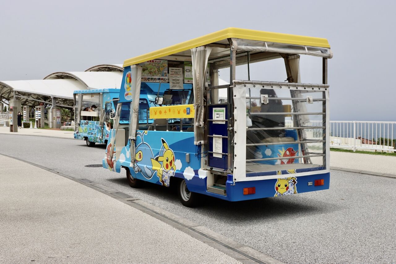美ら海水族館前を走っているこのバス的なやつに乗って・・・