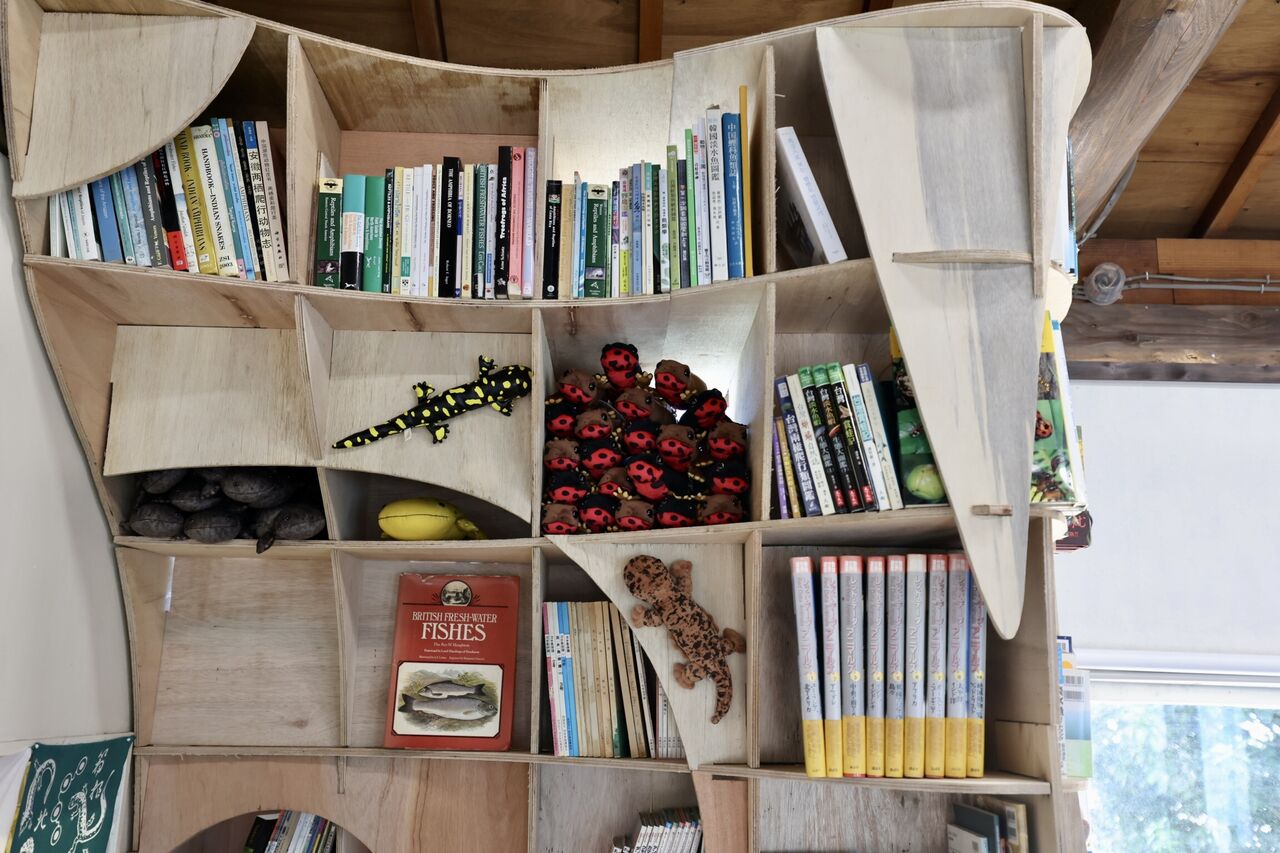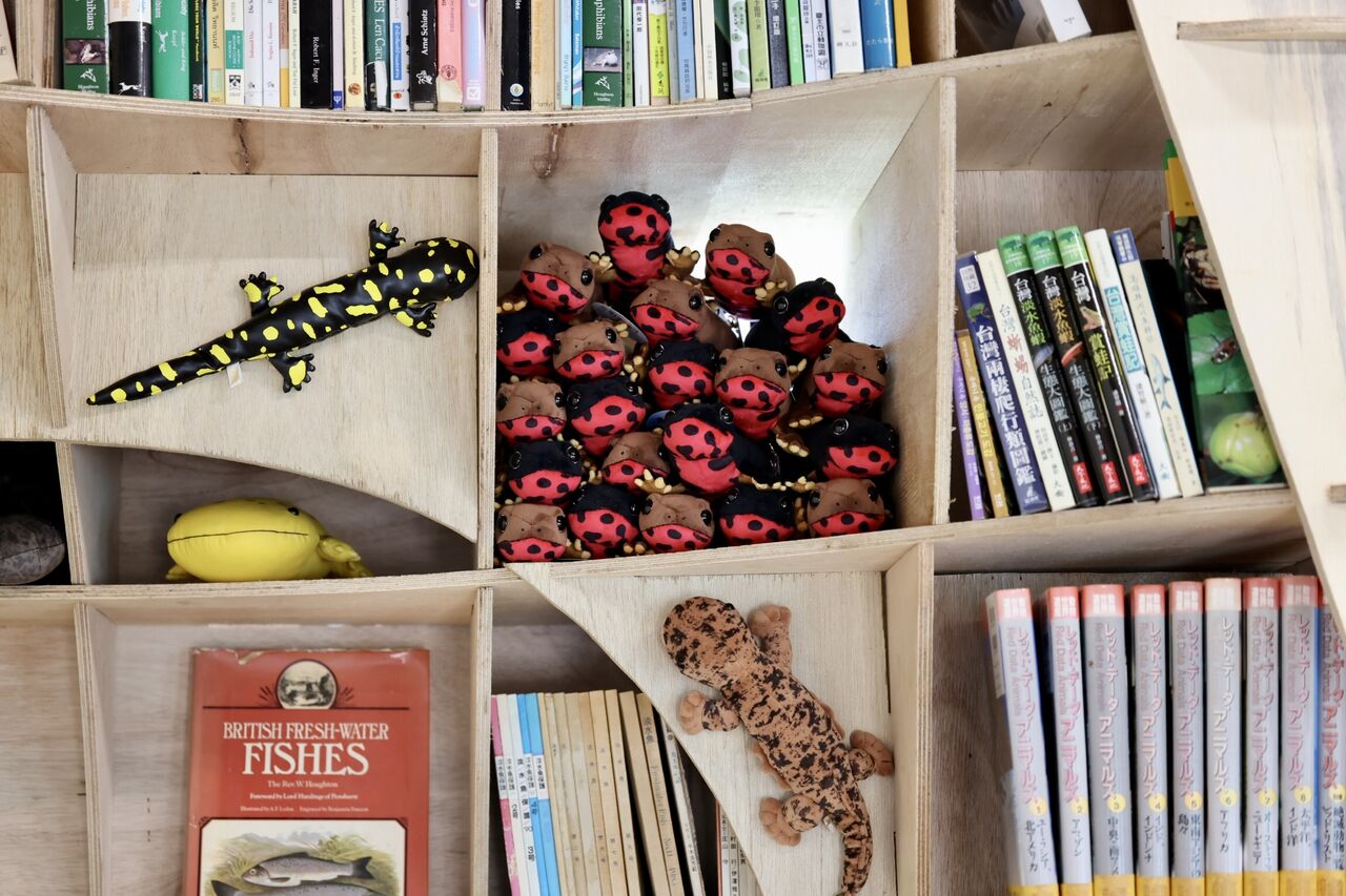 この素敵な本棚は、京都市立芸術大学院生の方々が作ったそうです。オシャレだし、本の充実ぶりも凄いし、本当にこの施設に通い続けたら魚・両生類博士になれるんだろうなぁーという気がします!琵琶湖の近くに住んでいる方が本当に羨ましい~!!