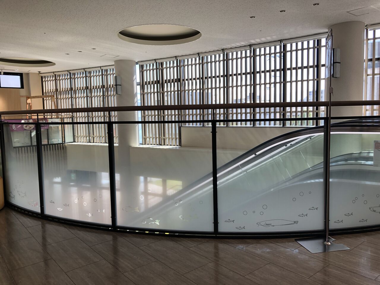 ガラス手摺に貼られているフィルムが魚になっていて・・・