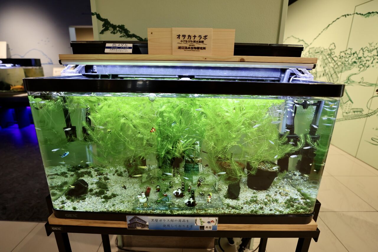 2019年に水槽3つ設置したところから始まり、少しずつ規模拡大して現在に至るそうです。まだまだこれから大きくなるのかもしれませんね!滋賀県ということもあり琵琶湖に生息する魚を中心にした小さな淡水魚水族館です。無料ですのでぜひお立ち寄りください!