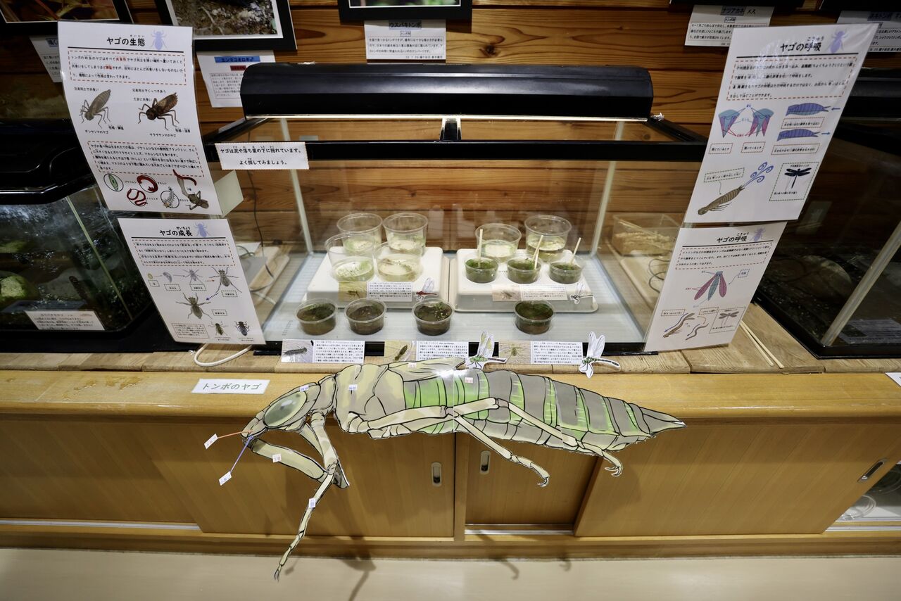 トンボの楽園であるがゆえ、ヤゴの飼育展示もしています。
