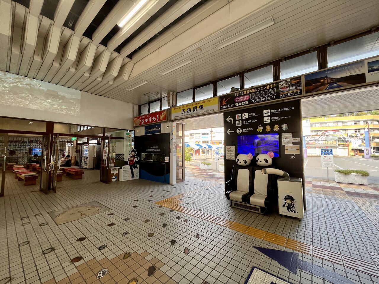 電車で白浜駅まで来る人はもちろん、車で来る人も駐車場は1時間以内なら無料で停められます。駅にある水槽ということで、もしかすると和歌山県内で一番多くの人に見られている水槽なのかもしれません!白浜駅に立ち寄った際にはぜひ見逃さずにご覧ください。