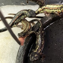 生まれてから1年以上が経過した我が家のチビイモリーズ。このダサイ家にも住み慣れたようで、活発に出入りし、家の前でウンチをかますヤンチャぶり!成長速度には個体差があり、大きなもので体長8cm前後、小さなもので体長4cm前後となり、大きなものは水場に入り身体を水につ ...