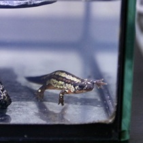 水槽内で生まれて孵化して生き延びたイモリの幼体。上陸したのですが・・・上陸直後からあまり状態が良くなくて、回復させることができず亡くなってしまいました。上記の写真からは想像できないくらい全身金箔の姿に変わりつつあり、うまく成長できていれば綺麗な成体になれた子 ...